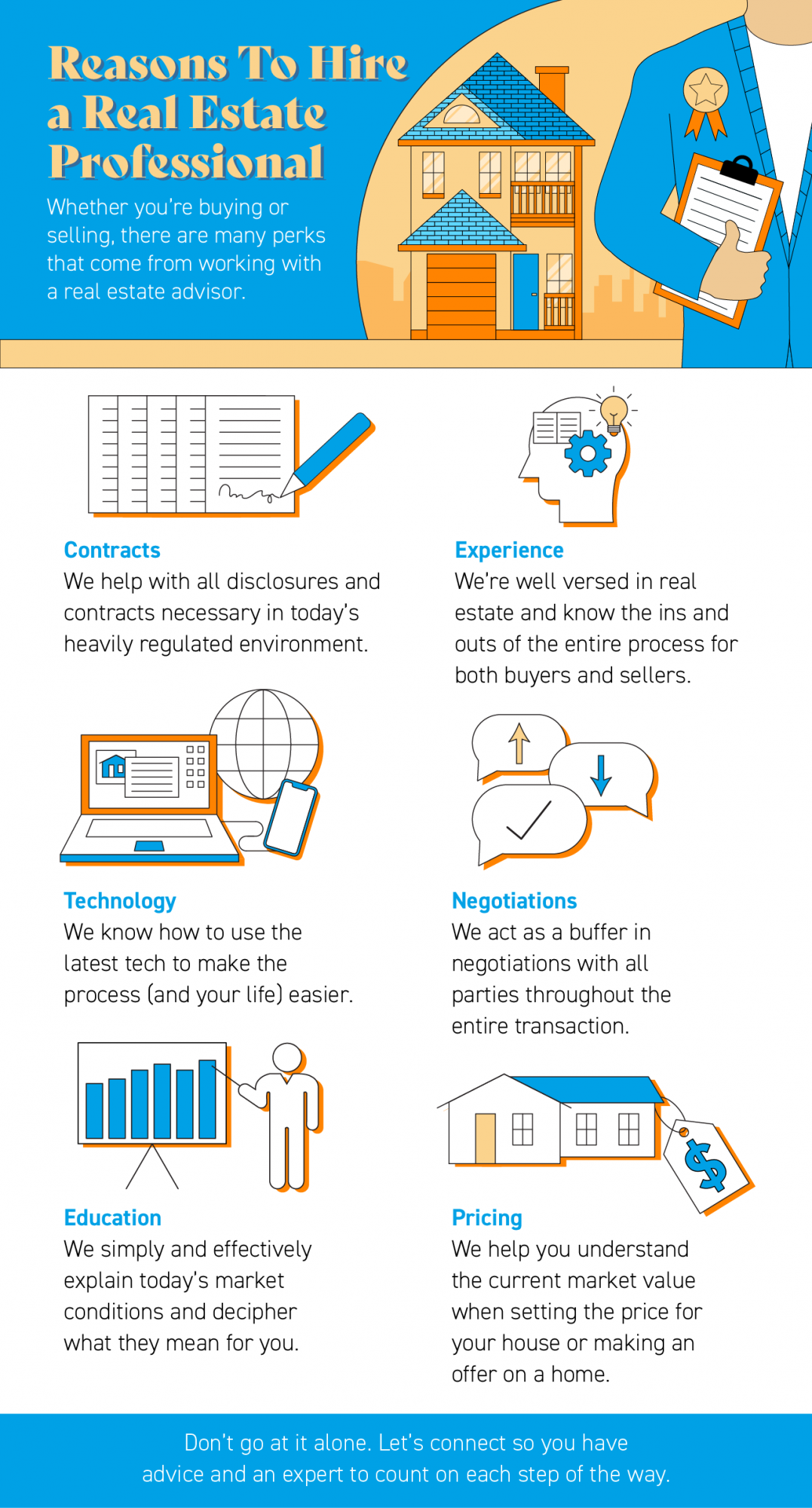 • Don't go at it alone. Let's connect today so you have advice and an expert to count on each step of the way.